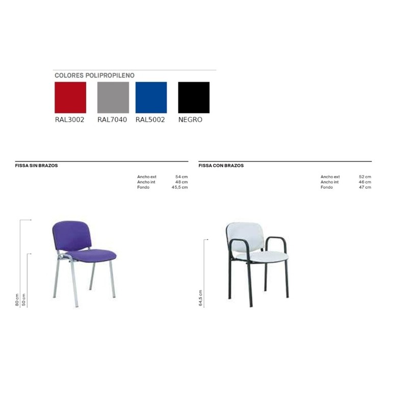 Més opcions disponibles: pala d’escriptura, estructura cromada o blanca (versions sense braços), seient i respatller entapissats, versió en bancada, model giratori amb rodes i altres configuracions (consultar)