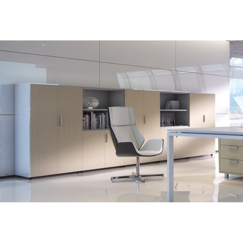 Armari d'oficina portes baixes. Fabricades per Ofitres, tauler de partícules de 19 mm per al sobre, sota, laterals i prestatges, posterior a 10mm d'espessor amb recobriment melamínic, incorpora anivelladors i pany. Compatible amb tots els models de mobles d'oficina de Ofitres