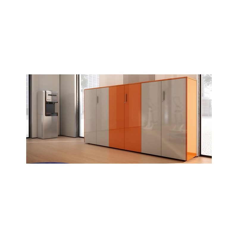 Aquest armari d'oficina Tendències amb portes completes està fabricat per Ofitres en tauler de partícules de 19 mm de gruix, amb recobriment melamínic i cantell ABS, garantint alta L'armari d'oficina tot portes acabat Luxe d'Ofitres és una solució d'emmagatzematge pràctica, resistent i elegant, dissenyat per a oficines uniforme i cuidada.