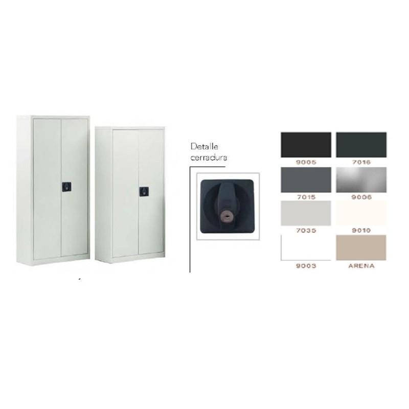 Fabricados en estructura metálica robusta, permiten organizar documentación, carpetas y material de oficina de forma cómoda y segura. Su diseño sencillo y profesional facilita su integración en cualquier entorno laboral, aportando orden y eficiencia en la gestión documental. Estos armarios incorporan puertas metálicas abatibles, zócalo nivelador para garantizar la estabilidad y cerradura en color negro, ofreciendo seguridad para el almacenamiento de documentos. Disponibles en varias medidas y colores, se adaptan a diferentes necesidades de almacenamiento en empresas, oficinas o espacios administrativos. Son una solución práctica para empresas que buscan armarios metálicos económicos, resistentes y funcionales, con buena capacidad de archivo y diseño adaptable a cualquier espacio de trabajo. Las imágenes son orientativas; configure el armario con las distintas opciones. Tenga en cuenta el volumen del armario para poderlo instalar en el lugar deseado.