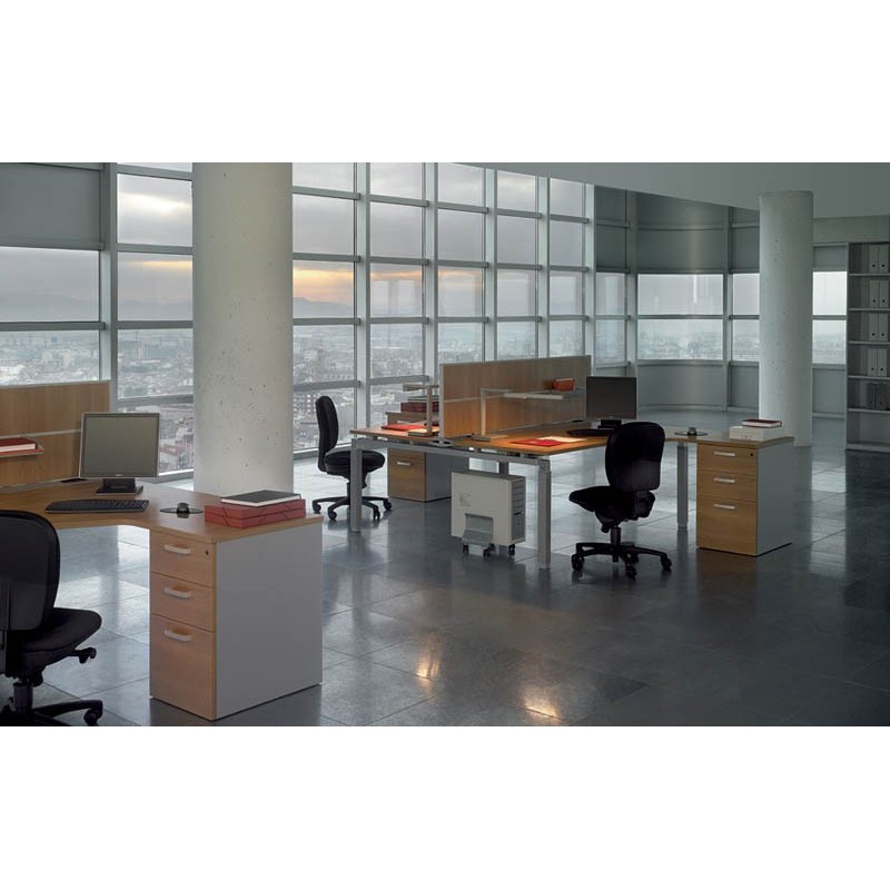 Mesas rectas Rock 4, fabricadas por Mobel Linia. Sobres fabricados en melamina de 25 mm con canto de 2mm en todo el perímetro. Laterales de travesaño tubo de acero 60x40x2mm, montantes en tubo de 60x60x2 Faldón de mesa y bandeja de cables no incluidos en el precio. Uno de los modelos más completos del mercado